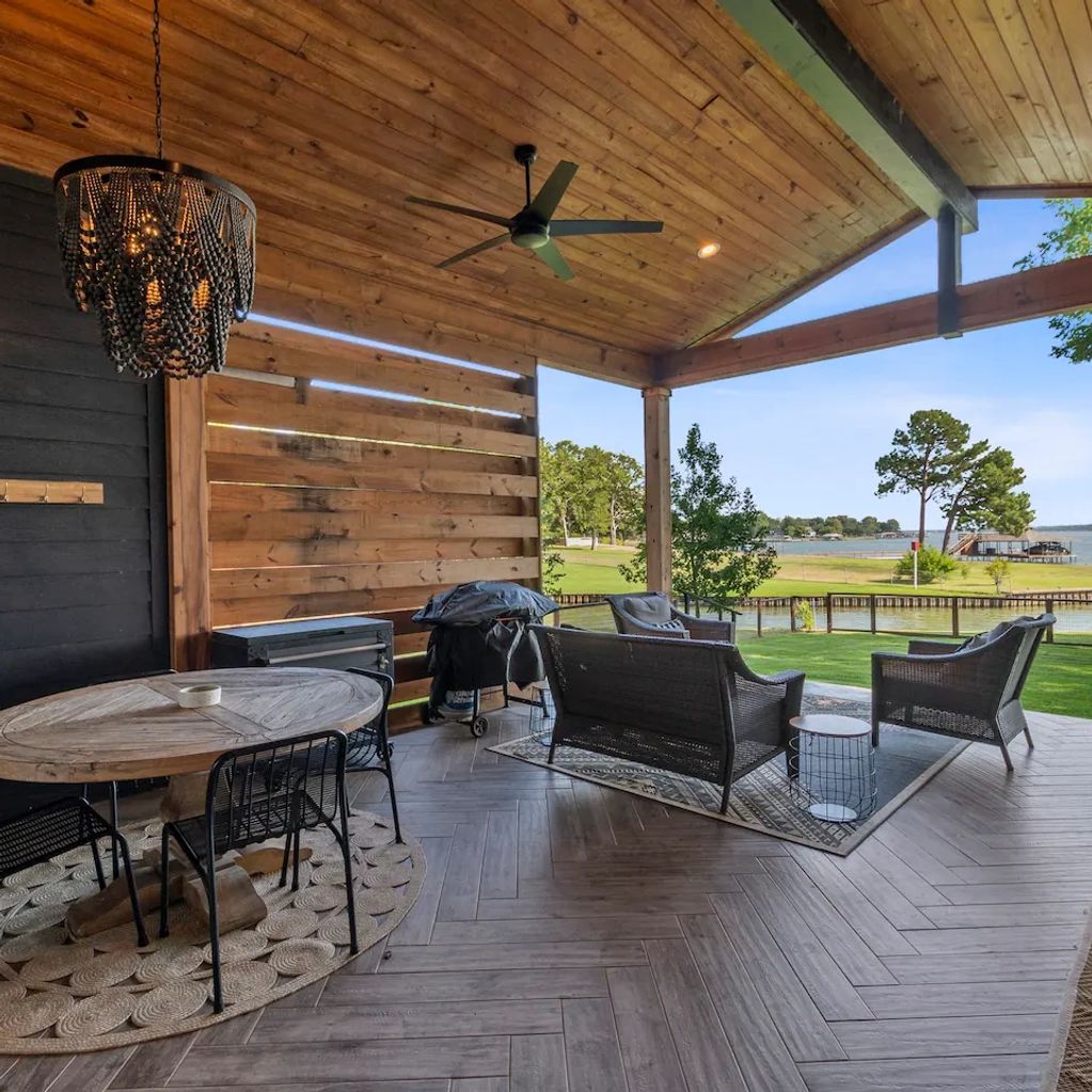 Balcony with outdoor sofa & dining table Dock with upper deck. Pool table. Ping-pong table. Fire pit. Kayaks.